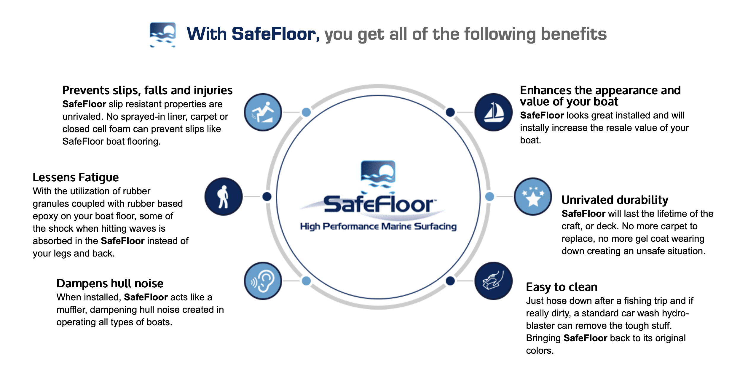 When SafeFloor boat flooring is installed, you’ll have the safest, most durable boat flooring on the market today.